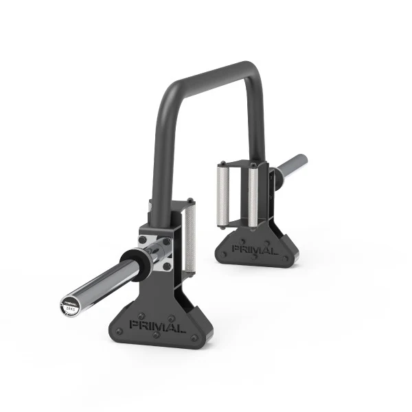 The Primal Performance Series Open Trap Bar is designed to provide maximum versatility and ease of use. The open-sided structure gives users easy access while not compromising range of motion, while the neutral setup position reduces stress on the lower back. The bar comes with removable dual drip handles with medium knurling, and is rackable and suitable for use with power racks. The bar's round tubing is comfortable for using to perform squats or pressing exercises, while the hard chrome Olympic sleeves and black powder coated frame ensure a sturdy and safe user experience.